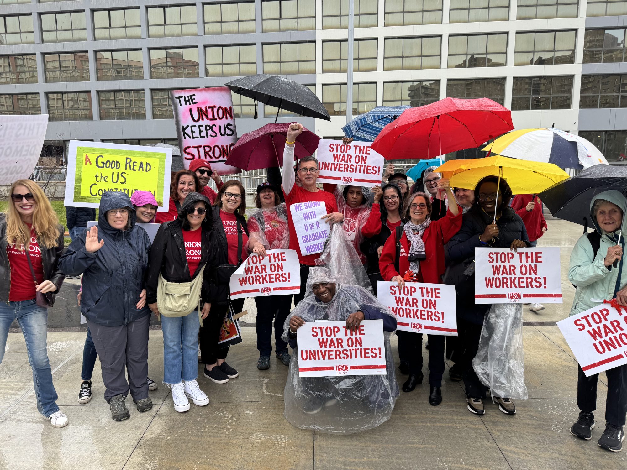 Union leaders and rank and file members of the PSC’s Immigrant Solidarity Working Group met outside CUNY’s midtown headquarters to deliver a petition signed by more than 7,300 members of the CUNY community demanding “No ICE/DHS at CUNY.”