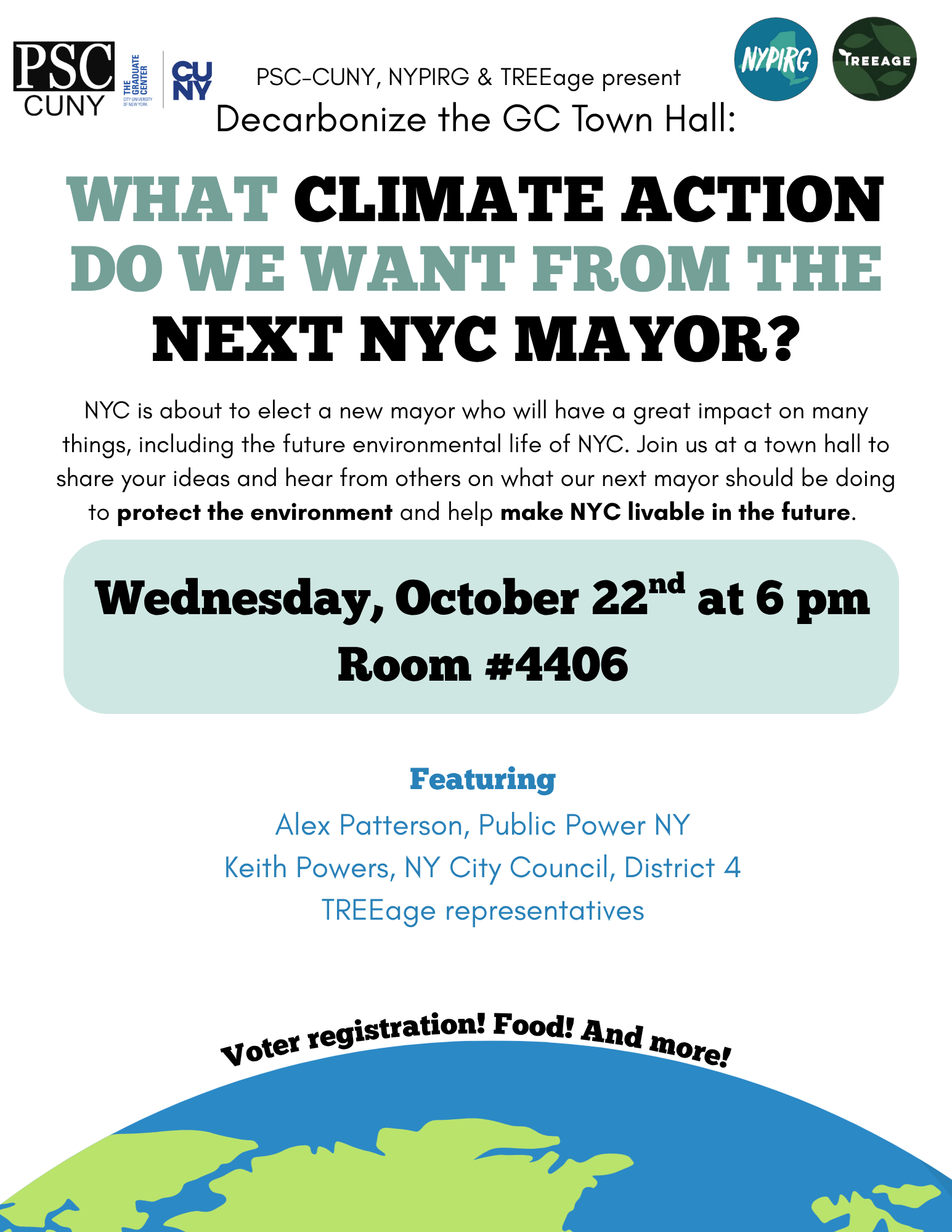 As well, we want to register as many students, faculty, and staff as possible! The deadline to register to vote in the mayoral election is October 25th, and a strong CUNY vote can further protect our city and university.