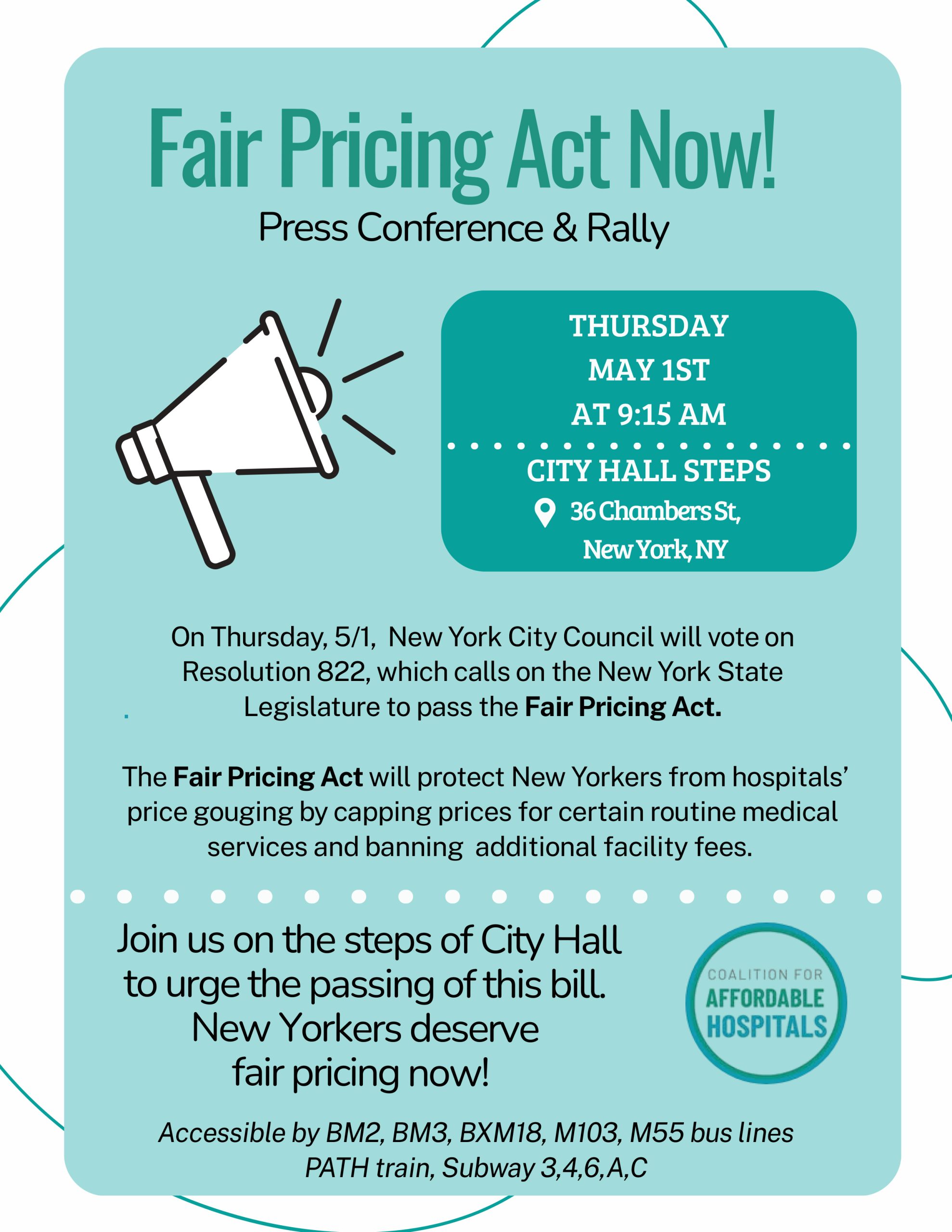 Join us on Thursday, May 1 at 9:15am in front of NYC City Hall where we’ll call on the City Council to pass a resolution in support of the #FairPricingAct!