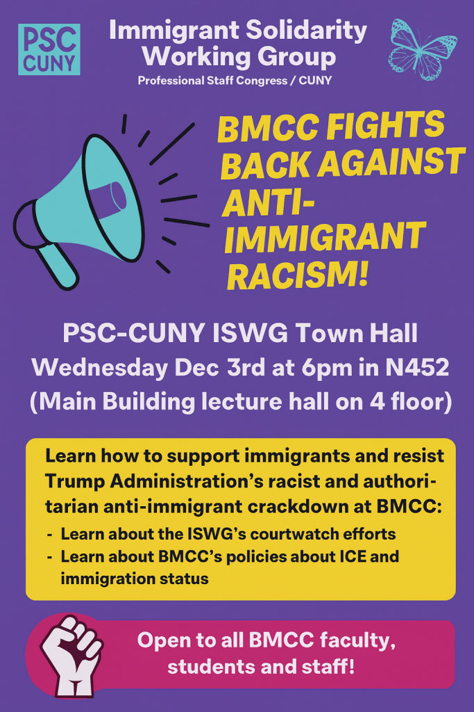 Join Us: BMCC Fights Back Against Anti-Immigrant Racism – Town Hall This Wednesday Share Share on Facebook Tweet on Twitter Share via Email Print Published: December 2, 2025