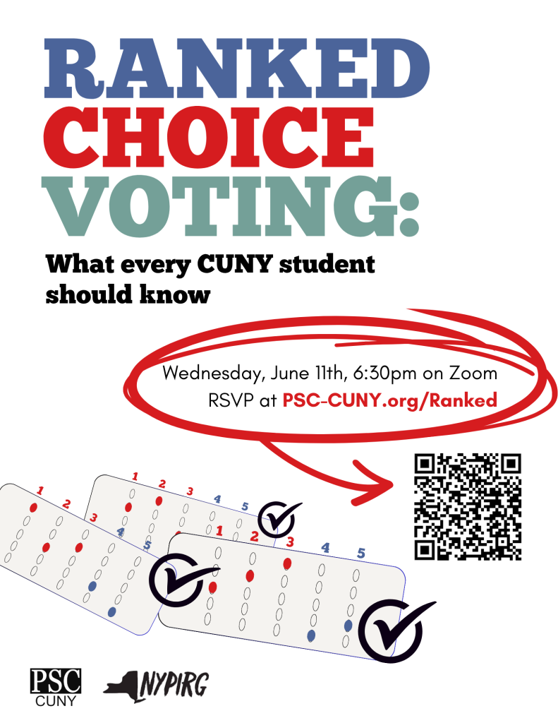 Join the PSC and NYPIRG for a student-focused training on Ranked Choice Voting.