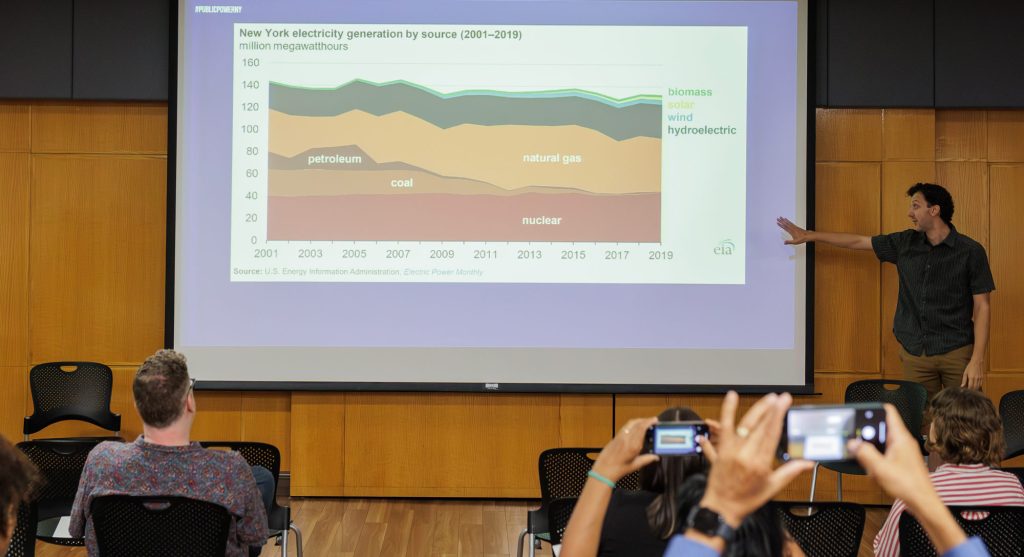 Luckily, we New Yorkers collectively own the New York Power Authority (NYPA), founded in the 1930s by then-Governor Franklin Delano Roosevelt to provide energy to our public buildings, including CUNY, SUNY and the public schools. In our mission to improve our campuses and get them off fossil fuels, we teamed up with Public Power NY (PPNY), an environmental justice advocacy group advancing a massive shift away from fossil fuels and to renewable energy, specifically through the NYPA.