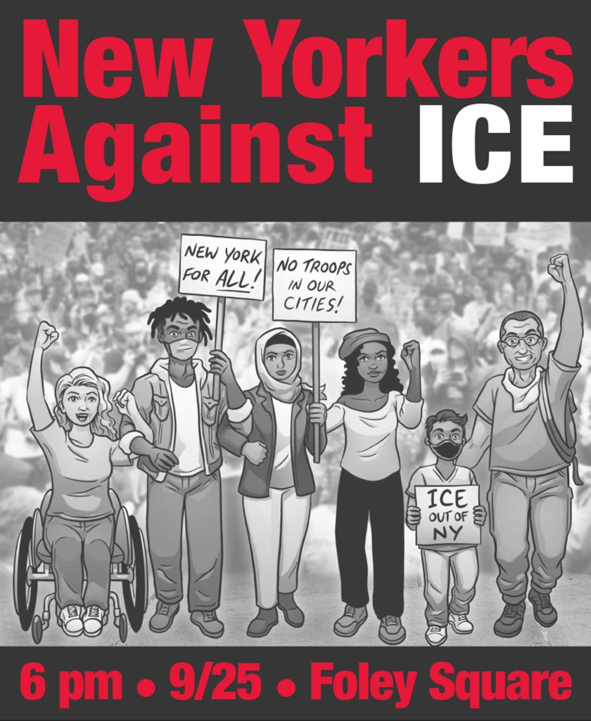 Unions and community groups will rally and march through lower Manhattan the evening of Thursday, September 25 to protest ICE’s persecution of immigrants at 29 Federal Plaza and in our communities, reject any deployment of federal troops or law enforcement personnel to our city, and demand that city and state lawmakers pass legislation to protect immigrants and oppose collaboration with the federal government’s program of mass deportation. RSVP here.