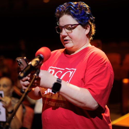 Elizabeth Hovey, PSC John Jay Chapter Co-Chair and Adjunct Assistant Professor, John Jay College: “Our students are betrayed by you permitting CUNY management to barricade adjuncts from their access to the multi-year job security that the terms of the Memorandum of Agreement clearly promises. The list of John Jay programs you don’t recognize with protections exceeds the time I have.” (Read Elizabeth Hovey’s full testimony and watch their testimony here.)