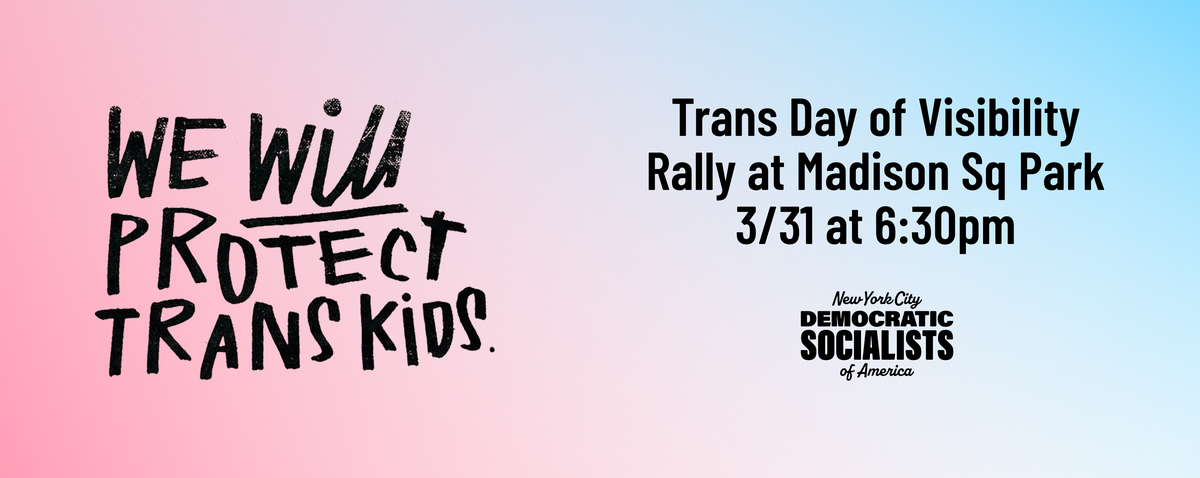 The PSC’s Sexuality and Gender Working Group urges all PSC members to join them at the Trans Day of Visibility Rally TODAY, Monday, March 31 at 6:30pm in Madison Square Park. Click here to let the working group know you’ll be there. Meet in Madison Square Park at the flagpole near the entrance at 24th St. and 5th Ave (map).