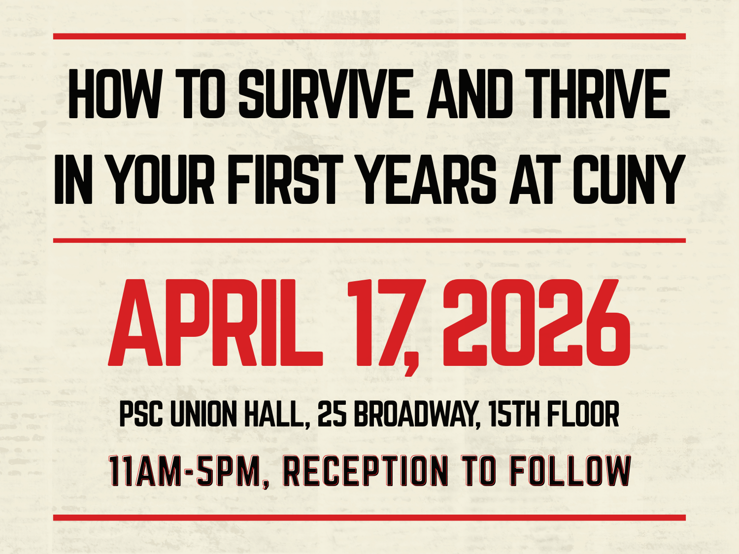 Fri, April 17, 11:00-5:00, Reception to Follow, in the PSC Union Hall