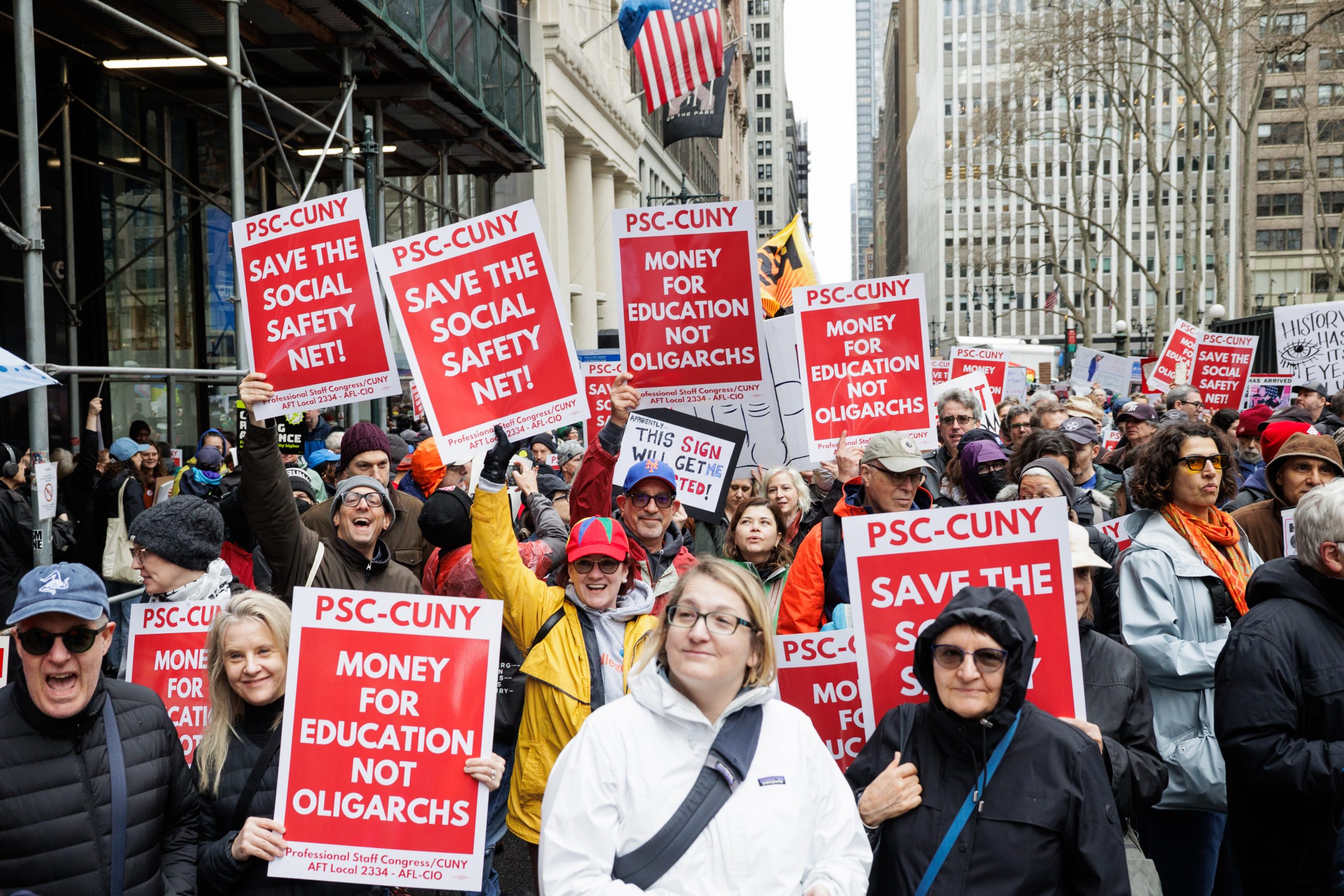 PSC members will join a “Kill the Cuts” rally on Tuesday, April 8th in midtown, organized nationally by the American Association of University Professors (AAUP) and anchored locally by a broad coalition of academic labor unions. Demonstrators will gather at 5 PM in front of the New York Public Library (42nd St. and 5th Ave.).