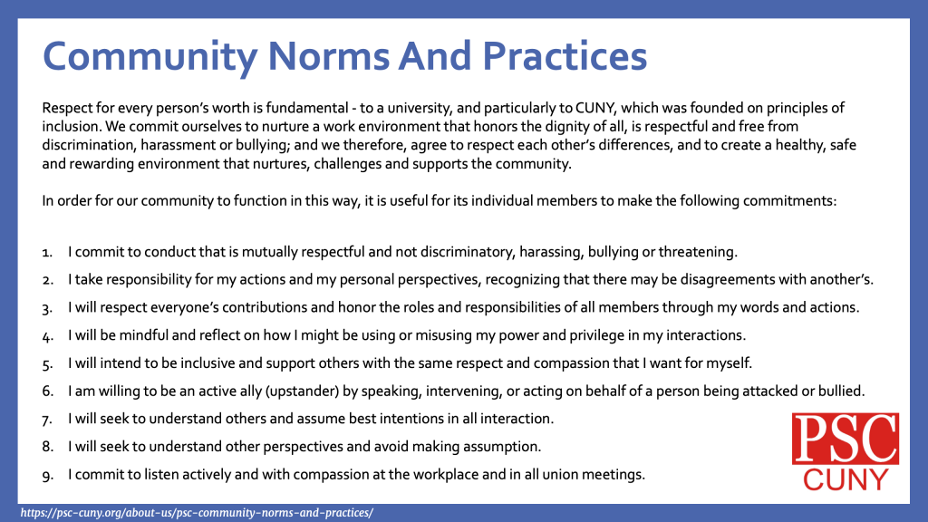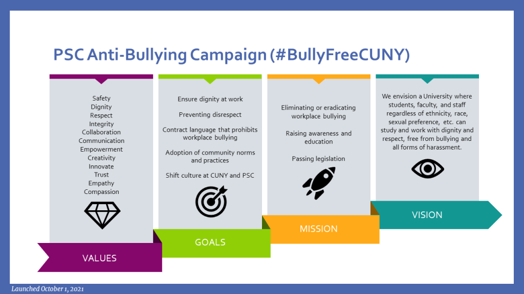 - October 22, 2020: Joint Anti-Bullying Statement from PSC and CUNY
